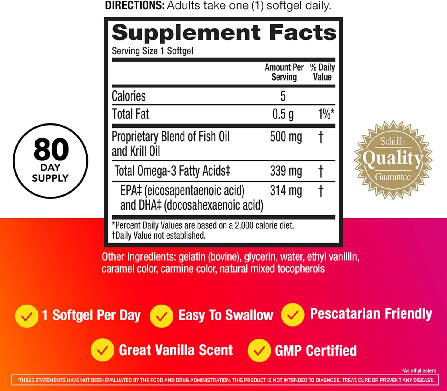 It combines the high concentration of fish oil with the superior, easier absorption of krill oil! This powerful duo gives you 2X the Omega-3s of standard fish oil in just one softgel.